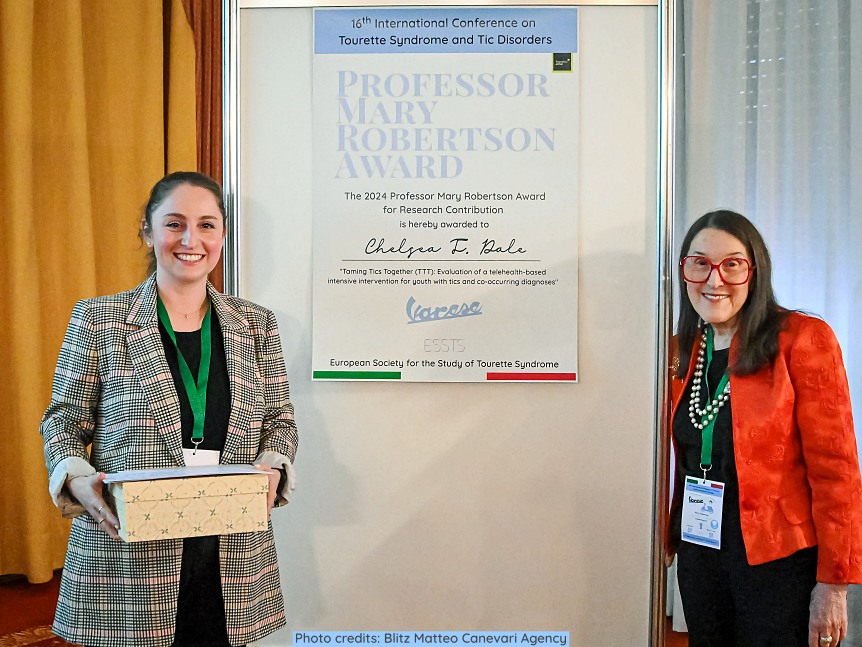 She received the Professor Mary Robertson Award for Research Contribution 2024, for her work "Taming Tics Together (TTT): Evaluation of a telehealth-based intensive intervention for youth with tics and co-occurring diagnoses".